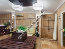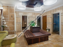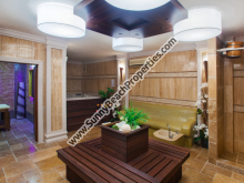 • СПА центр: Полностью завершённый, естественные материалы, проект дизайнера. Профессиональное техническое оборудование фирм – лидеров в этой области. Финская сауна, облицовка – северная ель (сухое помещение, t 100° С), парилка (мокрое помещение с паром и высокой влажностью, t 40° С ), ледник (холодное помещение со льдом), место для релаксации с диваном с разогревом и ванной для ног, массажная комната, уголок с джакузи, душем и шоковым ведром.
