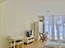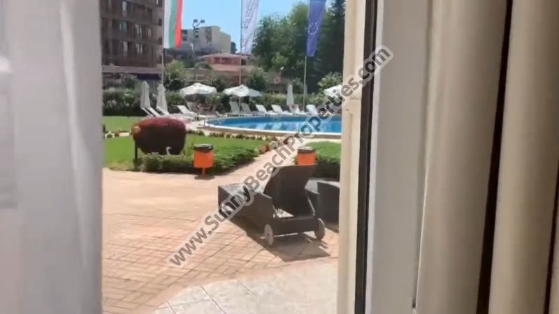 Просторен обзаведен едностаен апартамент - студио с дректен излаз на басейн за продажба в комплекс Флорес Парк /Flores Park/ в топ централната част на Слънчев бряг, 500 м. от пляжа на Слънчев бряг