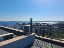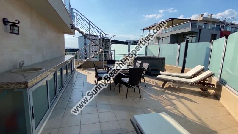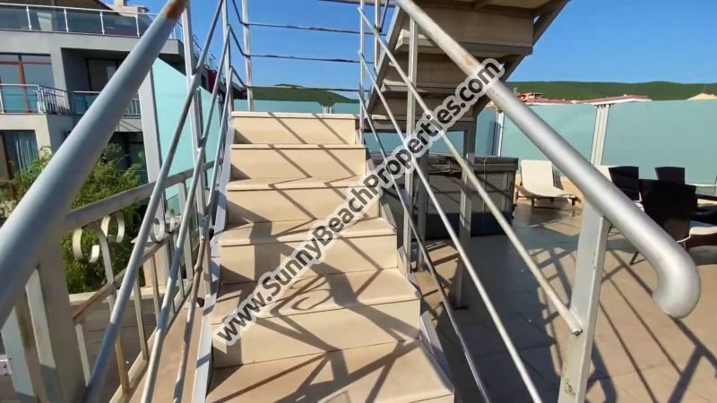 Видео от откритата терасата на второ ниво на пентхауса Луксозно обзаведен тристаен апартамент пентхаус с 2 спални и 2 бани и 2 големи тераси с гледка море и планина и джакузи: