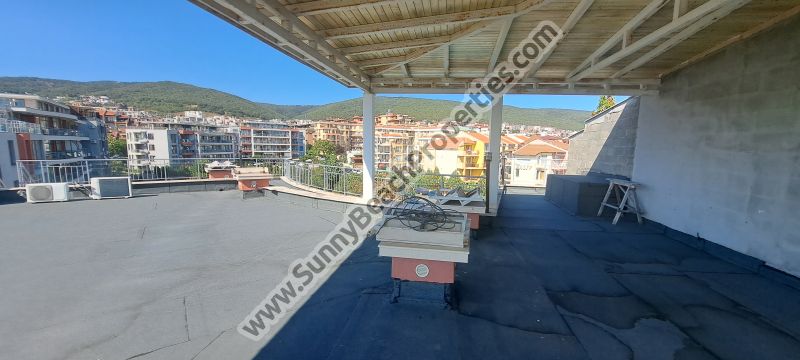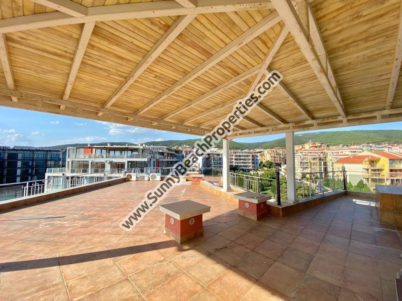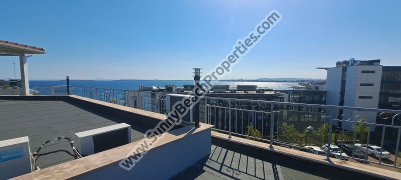 1) Луксозно обзаведен тристаен апартамент пентхаус с 2 спални и 2 бани и 2 големи тераси с гледка море и планина и джакузи: