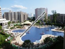 New better price! Exclusive Top Summer 2024 Bulgarian Sunny Beach Sea view Luxury Property Deal of the Week! Top Summer 2024 Bulgarian Sunny Beach Sea view Luxury Real Estate Deal of the Week! Top Summer 2024 Reduced Price for Quick Sale At Price Below the Property Market Value 72.500€! Sea view & pool view Luxury furnished spacious studio apartment with bedroom part / 1 - bedroom apartment open plan for sale in luxury 5*** Royal beach Barcelo aparthotel with indoor pool, downtown Sunny beach and only 50m from the beach in Sunny beach, Bulgaria. The apartment is ideal for year-round living, holiday home, second home, beach home, summer holiday and / or rentals. The 5***** Royal Beach Barcelo apart-hotel is opened from 15.04 till 15.10.
