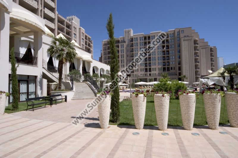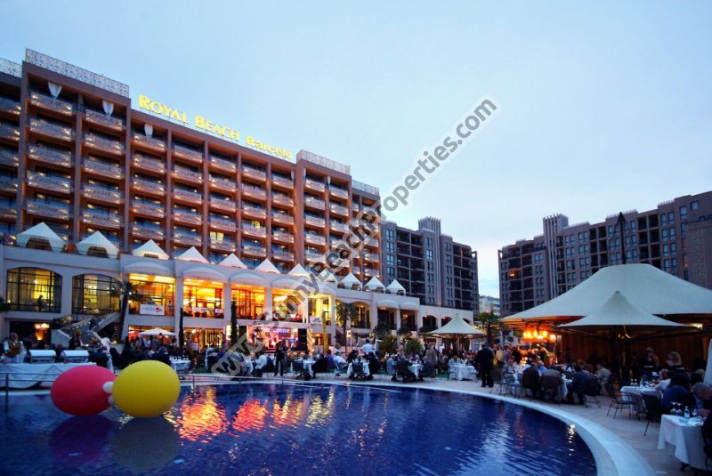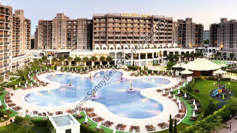 Promotion! Gorgeous sea view, park view and Sunny beach downtown view fully furnished 1-bedroom apartment for sale in luxury 5*** Royal beach Barcelo aparthotel downtown and 50m from the beach in Sunny beach, Bulgaria. The apartments is superb for holiday home and rentals. The 5***** Royal Beach Barcelo apart-hotel is opened from 15.04 till 15.10.