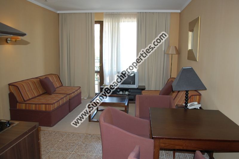 Top Reduced Price for Quick Sale 56500€! Gorgeous park view fully furnished 1-bedroom apartment for sale in luxury 5*** Royal beach Barcelo apart-hotel downtown and 50m from the beach in Sunny beach, Bulgaria.