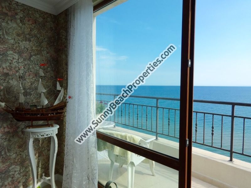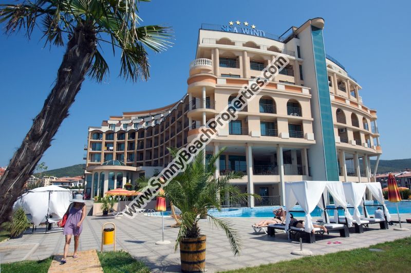 Beachfront stunning sea view and mountain view luxury furnished 1-bedroom apartment for sale in beachfront year-round 4**** Grand Hotel Sveti Vlas, ex Chateau Sea Wind, in absolute tranquility right on the white sandy beach in Sveti Vlas /Saint Vlas/, Bulgaria. 300m from year-round supermarket Mercury.