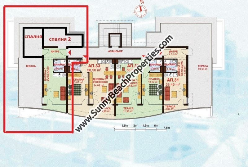 Furniture and equipment for all apartments in complex Lazur 5 , Sveti Vlas /Saint Vlas, Bulgaria: