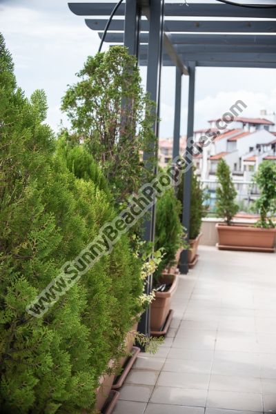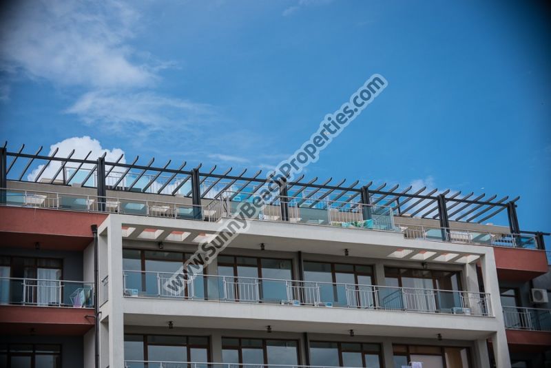 Balcony - 400 square meters on two levels. View of the sea and mountains.  There is a bedroom on the balcony - 20 sq.m., two toilets, a kitchen, a large jacuzzi for 8 people, a wood stove, etc. Excellent outdoor furniture, upholstered furniture, sun loungers. Part of the balcony, 150 meters, covered with a canopy - gazebo. Along the perimeter of the balcony live trees grow with an automatic irrigation system. Maintenance is about 1000 euros per year. Complex in St. Vlas.