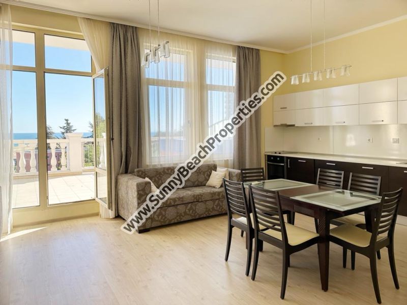 Sea view luxury furnished 2-bedroom/2-bathroom penthouse apartment with Jacuzzi for sale in luxurious complex Villa Rome 100m. from the beach in Nessebar