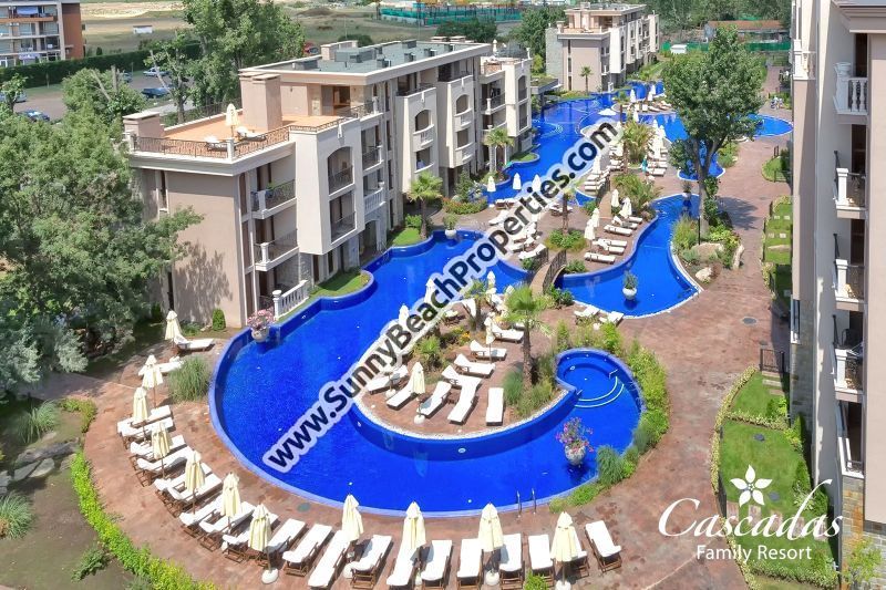 More resale beach luxury apartments for sale in 21 in 1 year-round luxury complex club Cascadas Family resort Sunny Beach, Bulgaria, in absolute tranquility in the central part of Sunny Beach Resort, Bulgaria, only 500 meters from the beach: