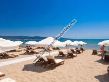 Stunning beachfront 5***** VIP apart-hotel de lux in the most prestigious and quiet part of the famous Bulgarian resort, Sunny Beach. Surrounded by dunes and 30 meters from the beach, its unique location and stylish architecture along the sumptuous interior design will satisfy even the most exquisite flavors of the luxury admirers. Enjoying beautiful views of the old town of Nessebar, glittering warm sea, the sound of surf and the nights filled with fun and romance will make your summer vacation unique and unforgettable. Following the trend of the five stars and most honored complexes in Sunny Beach, the complex offers additional amenities that will make you feel special. Exclusive restaurants, bars on the beach, open pool, parking, reception and lobby, especially magnificent suites, furnished with luxurious furniture and not finally, wonderful views of the entire bay and the old town of Nessebar.