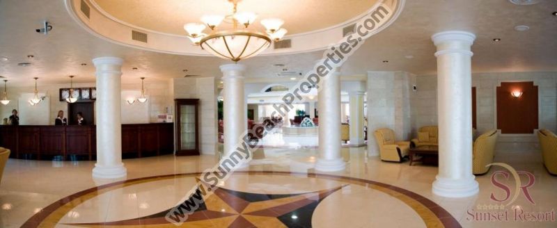 The luxury five-star Sunset Resort comprises 5 aparthotels and 6 deluxe waterfront villas, on a total built up area of 115 000 sq.m. The four outdoor swimming pools offer various water attractions and include two pool bars, all expanding on a total area of more than 3 500 sq.m.