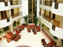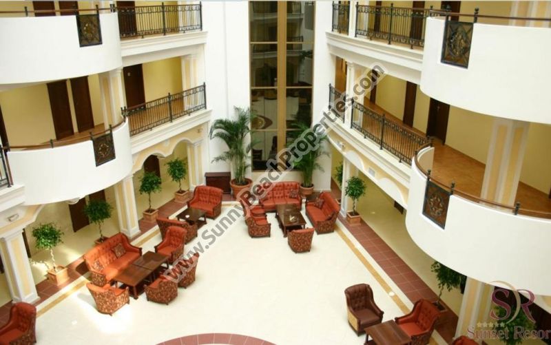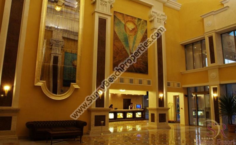This is the largest of all aparthotel buildings, on a total built up area of almost 50.000 sq.m. The building consists of 13 floors and is situated in the heart of Sunset Resort. The hotel offers following facilities: lobby with reception, 6 elevators, lobby bar, two buffet restaurants - Smaragd & Sapphire, with open-air terraces, French a’la carte restaurant, beauty parlor (hairdresser, manicurist, beautician), shops, fitness center, indoor pool (semi Olympic, 25 m), Spa & Wellness center, Vitamin bar, Bowling and Billiards, as well as a meeting hall (up to 80 seats) and business center. The hotel has at its disposal one-, two- and three-bedroom apartments.