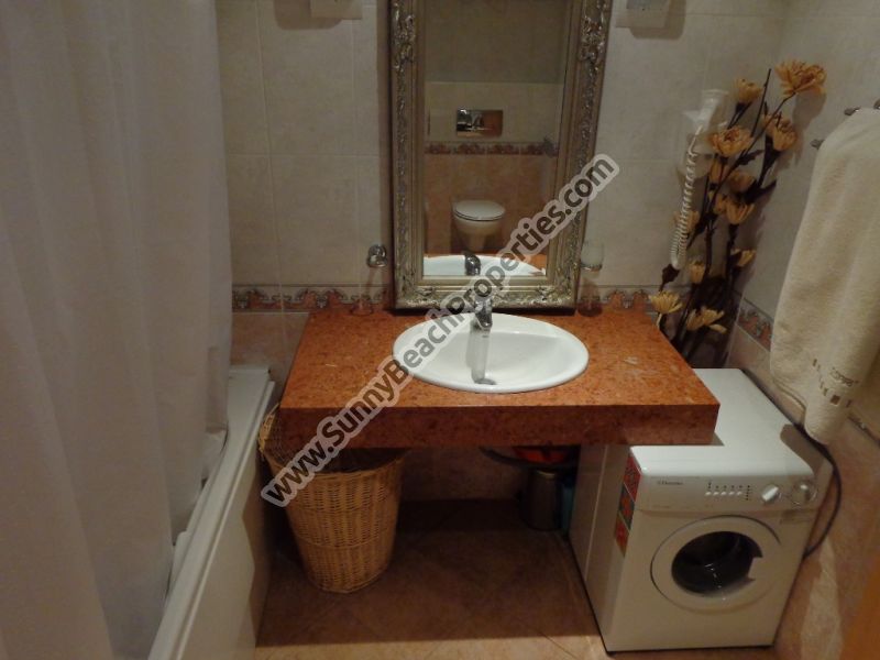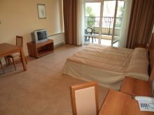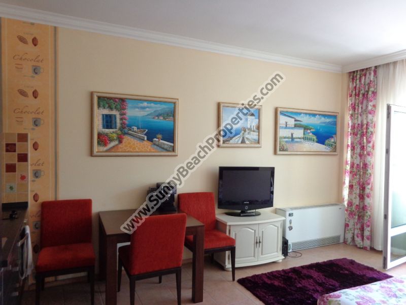 Beachfront sea and park view furnished studio apartment for rent in 5***** Sunset Pomorie Beach Resort right on the white sandy beach in Pomorie, Bulgaria.
